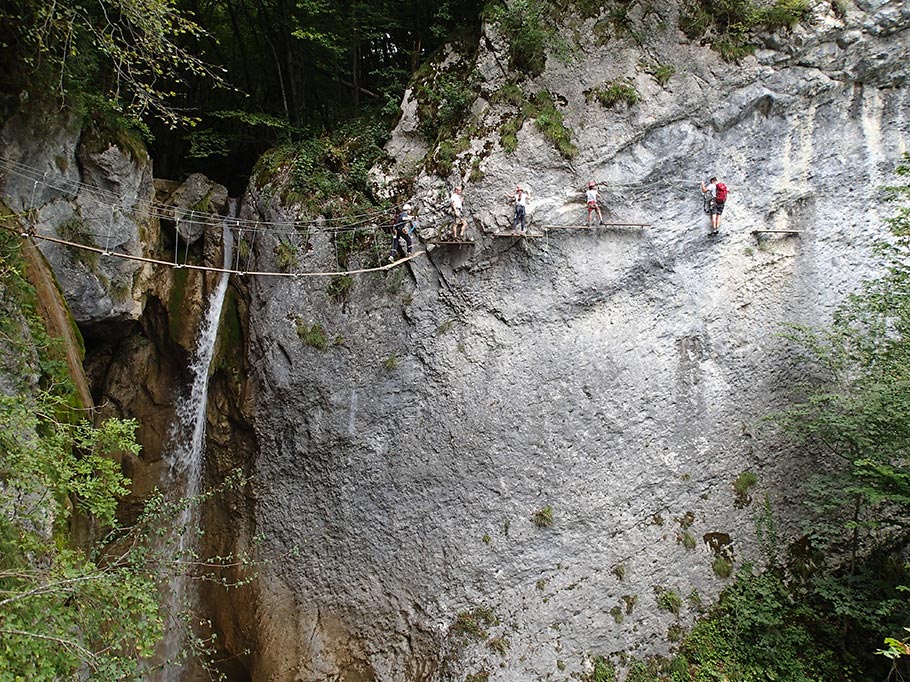 The atmosphere of the waterfalls and the ease with which the obstacles can be climbed make this via ferrata a superb introduction to climbing.